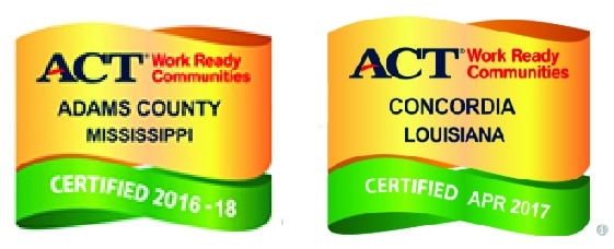 May 10, Natchez, MS & Vidalia, LA– Local officials announced today the completion of the required goals to become the first ACT Certified Work Ready Region to cross state lines. This nationwide initiative by ACT will help improve the quality of our regional workforce. This program links, aligns and matches a community’s workforce development efforts among the employer, the future employee and education institutions. Counties and parishes can now identify skills gaps and quantify the skill level of the community’s workforce by using the results of the WorkKeys® assessment. Educators can build career pathways that are aligned to the needs of the community’s business and industry.